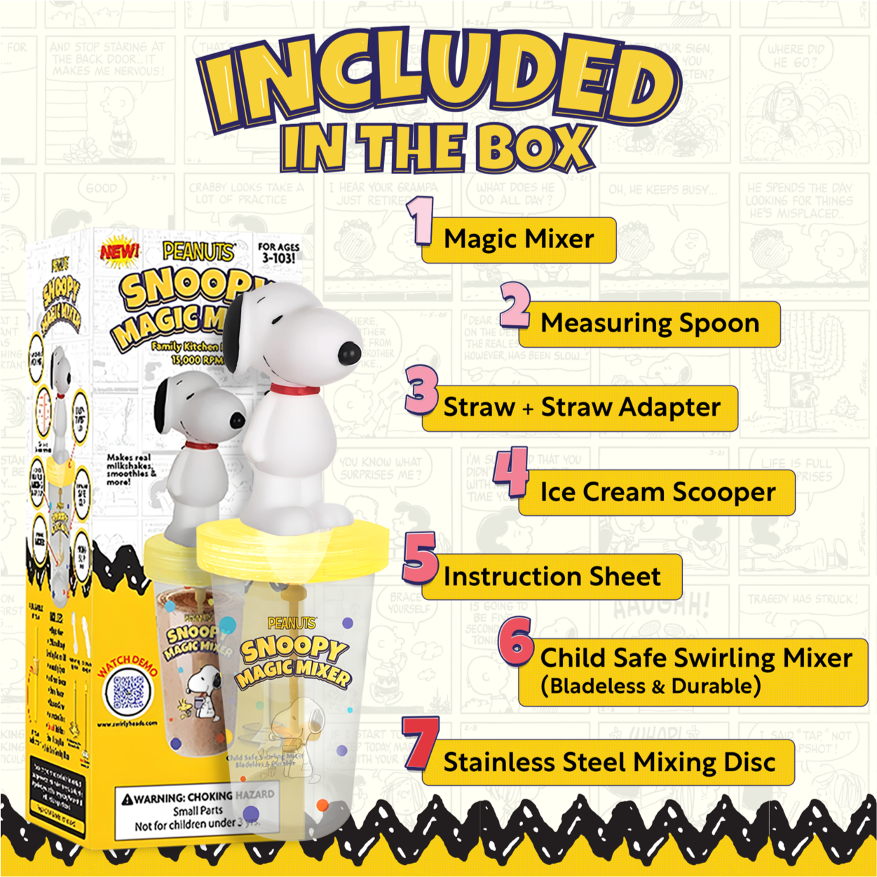 Bring a little Peanuts magic into your kitchen with the world’s first real mixer made just for kids (and Snoopy fans of all ages). Watch drinks come to life with a mesmerizing spin that’s safe, simple, and seriously fun.
